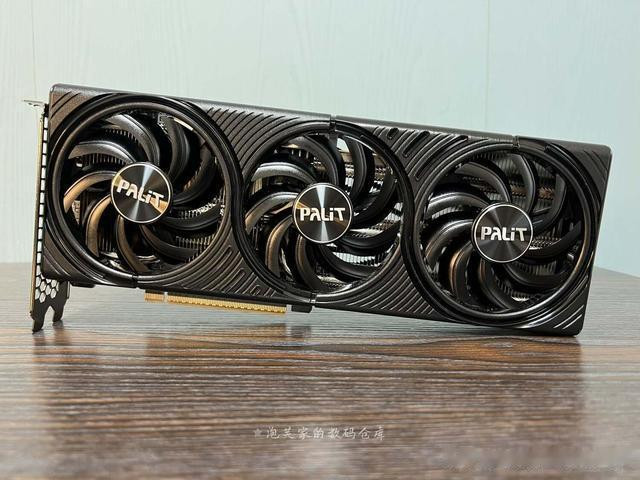 实测显卡长度290mm(不含挡板),较5070FE的243mm增加47mm,基板仅148mm,但散热器部分延伸142mm,采用前后贯穿的双槽散热结构,搭配3个90mm直径风扇,叶片设计有导流沟槽以优化气流。